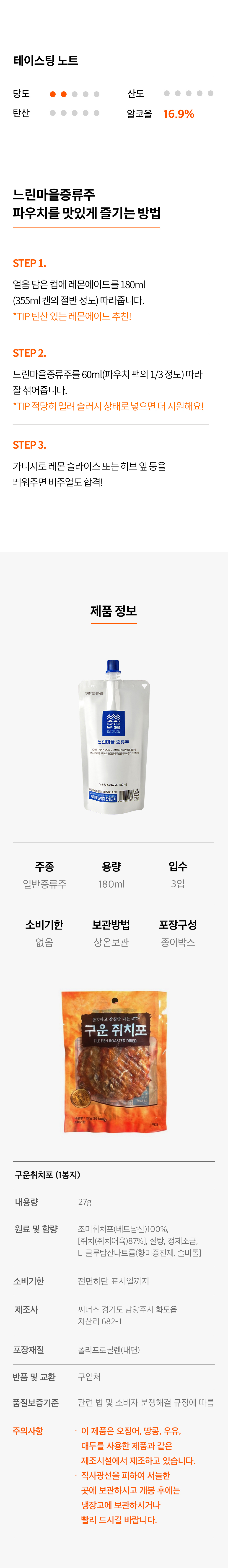 느린마을 증류주 파우치 아웃도어 술팩 증류주 16.9도 180ml