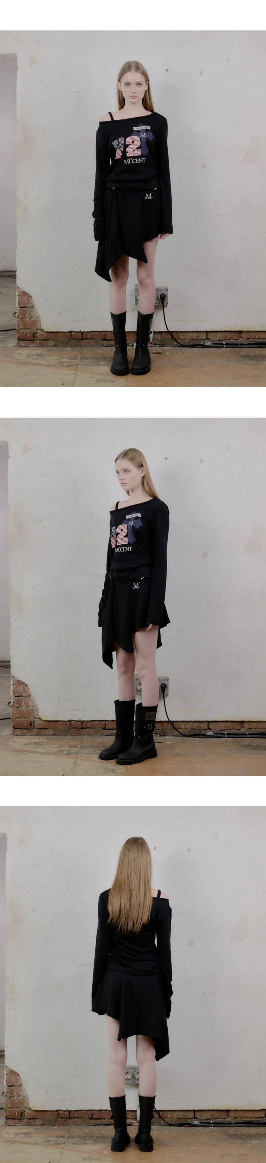 무센트 누아즈 셔링 언발란스 스커트 블랙