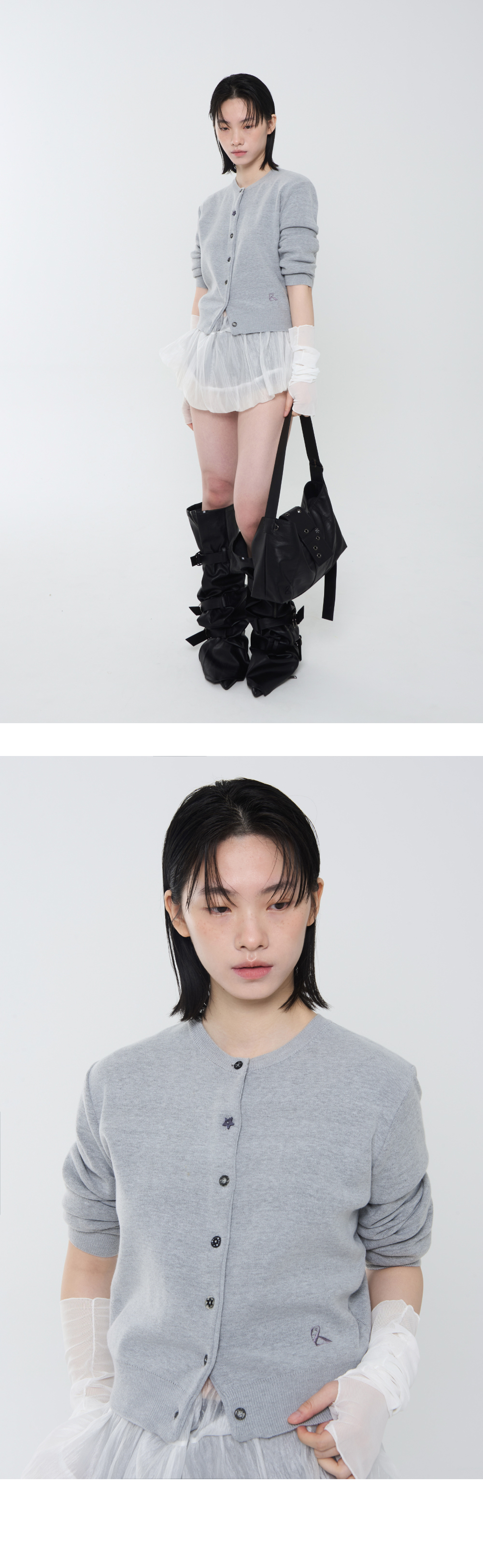 리오므 스텔라 버튼 니트 가디건 그레이
