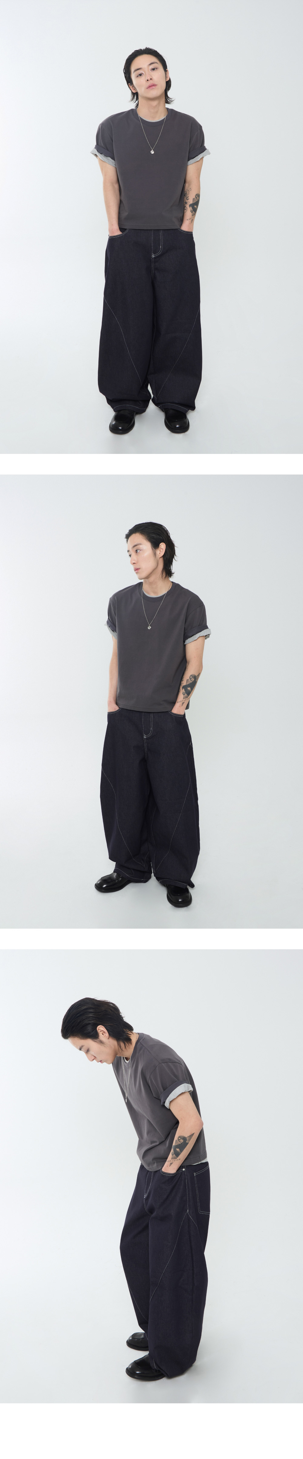 리오므 커브드 벌룬 데님 팬츠 인디고