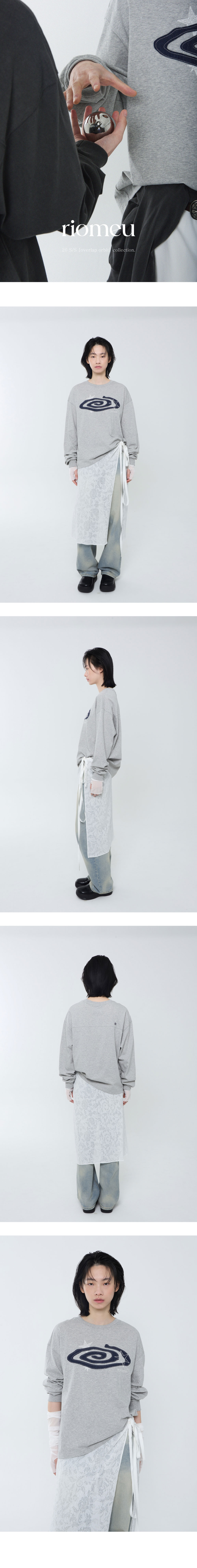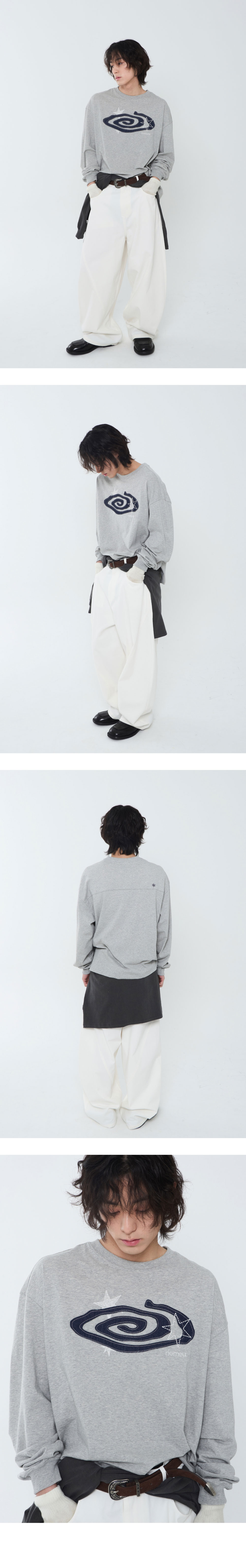 리오므 데님 아플리케 롱슬리브 티 멜란지 그레이