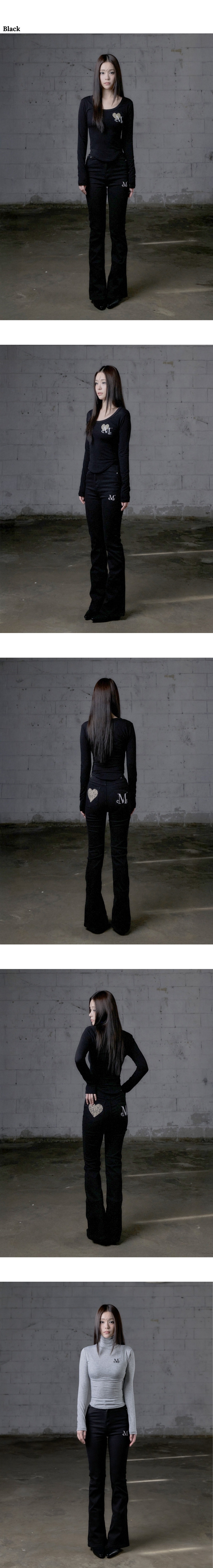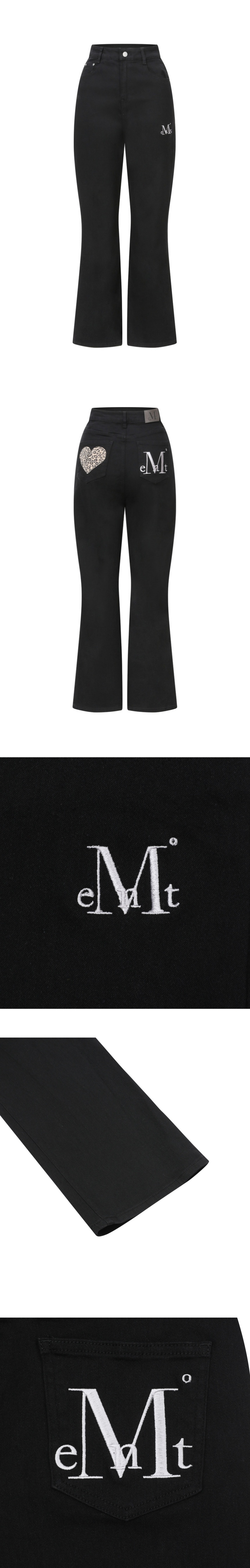 무센트 코론 백 레더 호피 하트 패치 부츠컷 코튼 팬츠 블랙