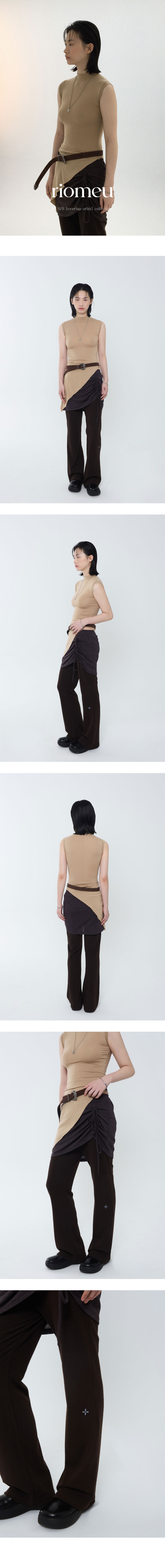 리오므 투웨이 셔링 레이어드 스커트 팬츠 브라운