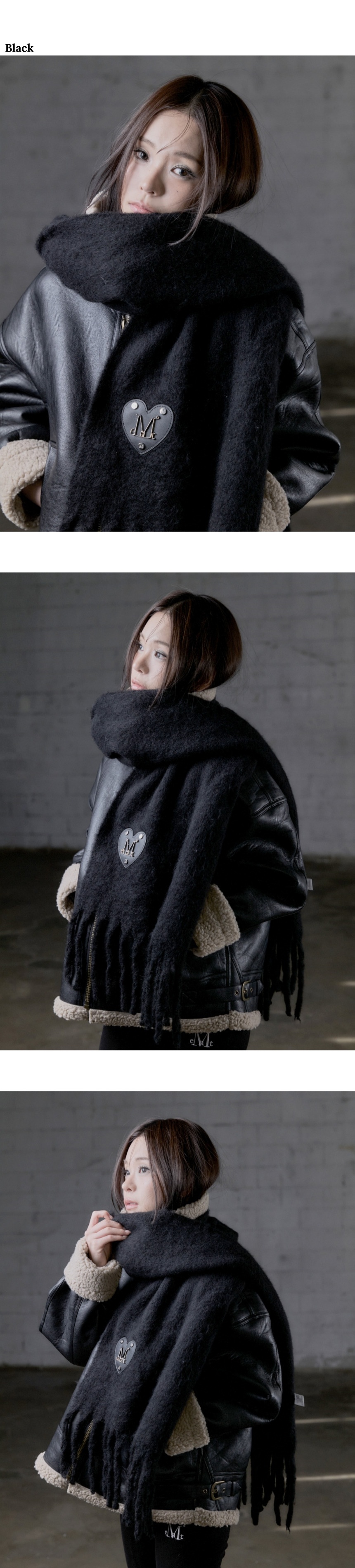 무센트 라모르 메탈 로고 하트 패치 머플러 남녀공용 (5컬러) 블랙