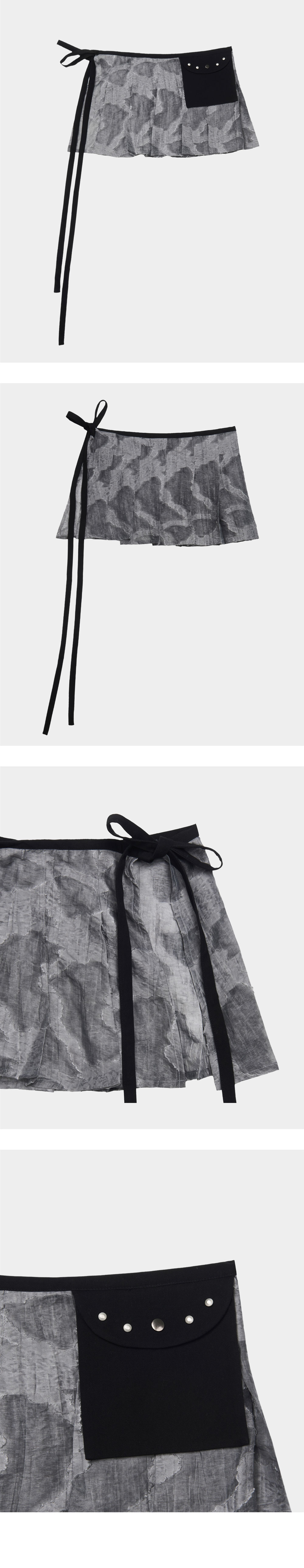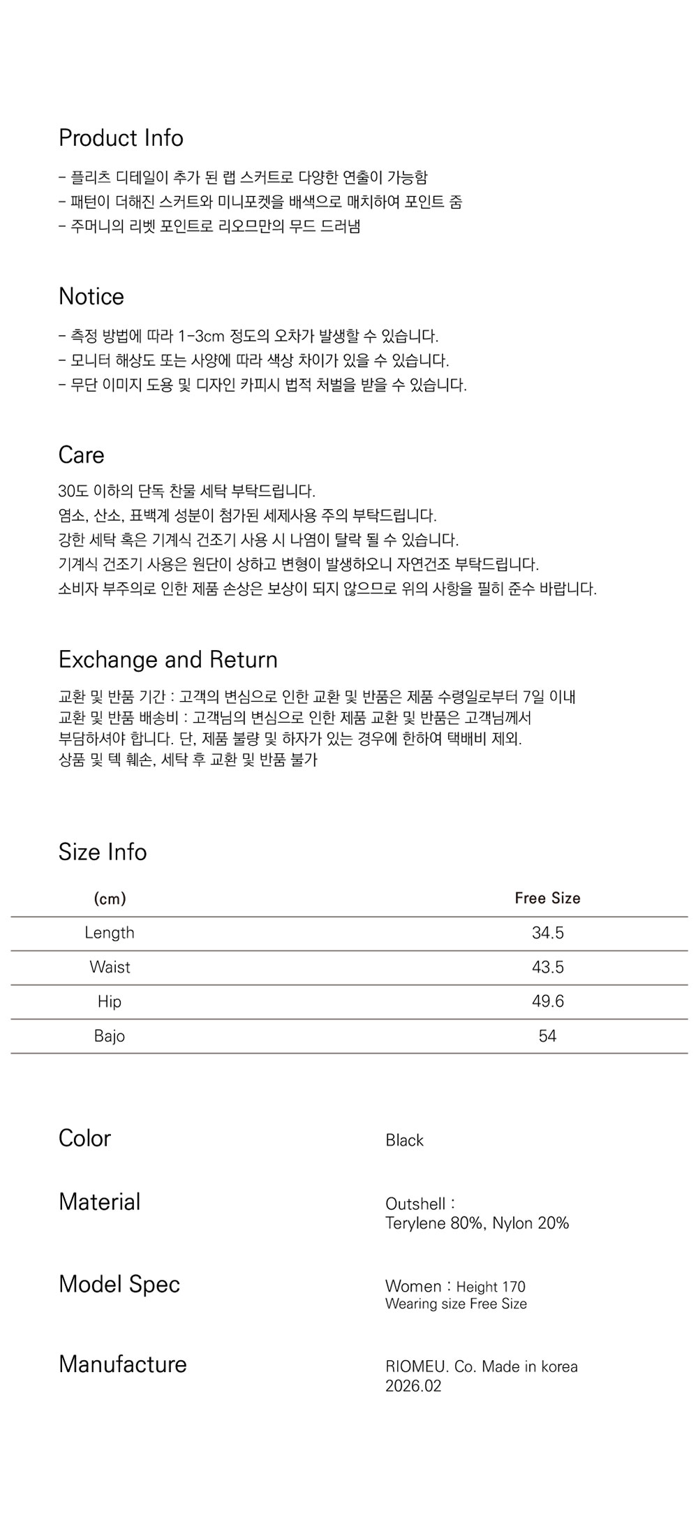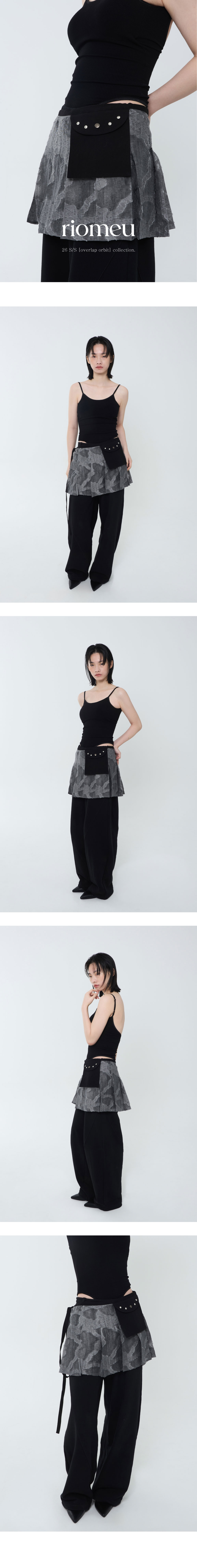 리오므 리벳 포켓 랩 레이어드 스커트 블랙