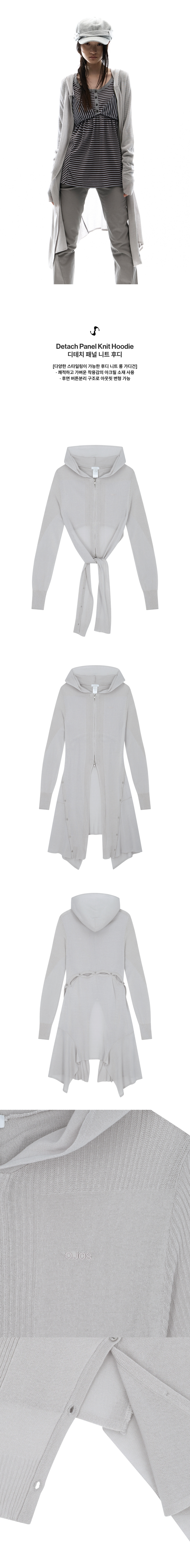 오호스 디테치 패널 니트 후디 그레이