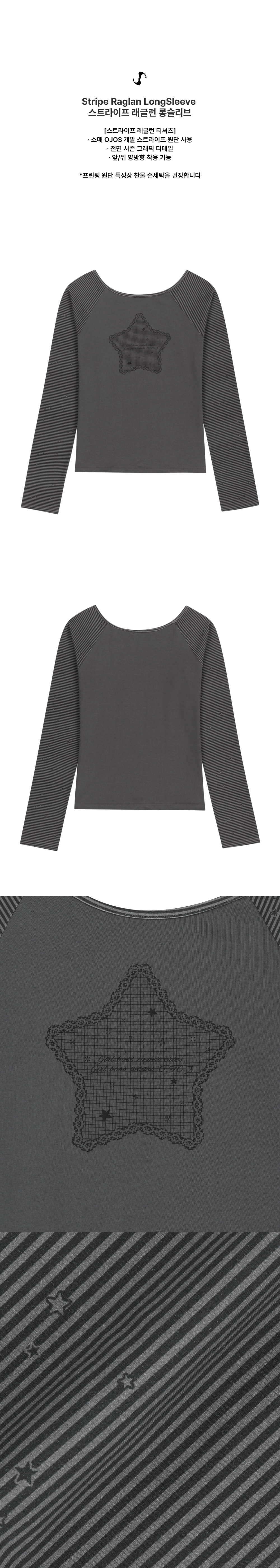 오호스 스트라이프 래글런 롱슬리브 라이트 블랙