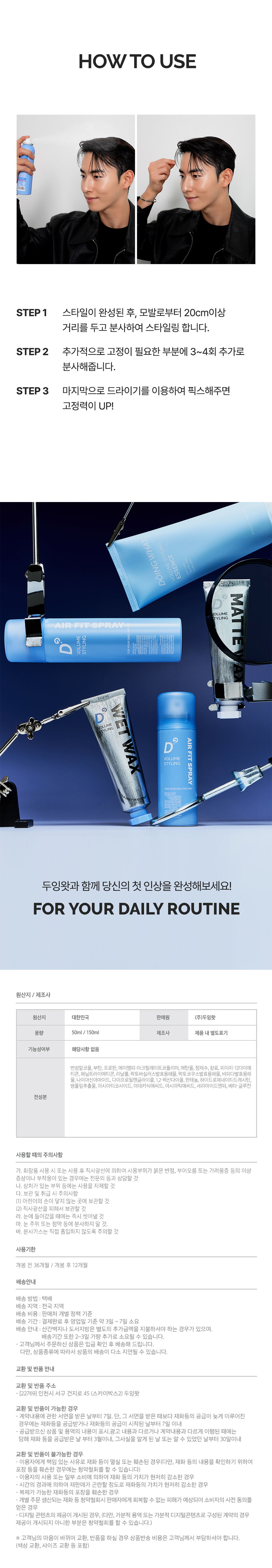 두잉왓 볼륨 스타일링 에어 핏 스프레이 150ml