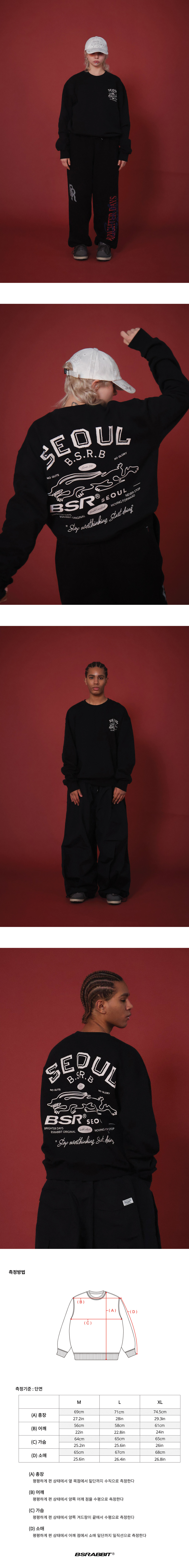 비에스래빗 서울 블랙 프린트 스웻셔츠 블랙