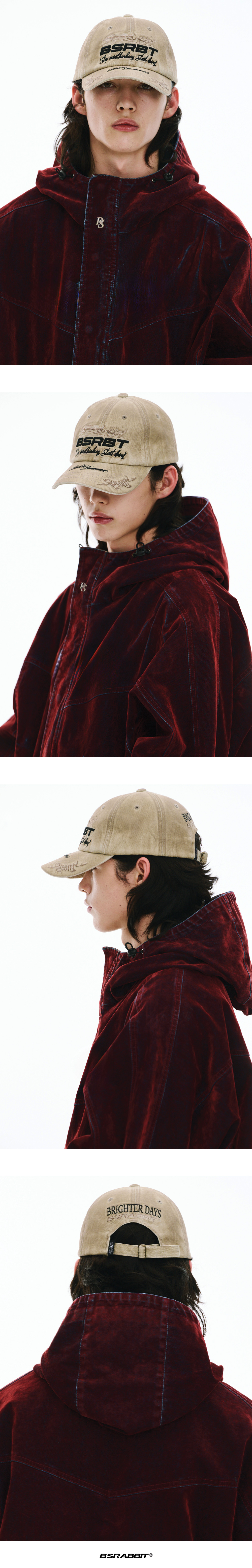 비에스래빗 3디 엠브로이더리 더티 워시드 코튼 캡 베이지