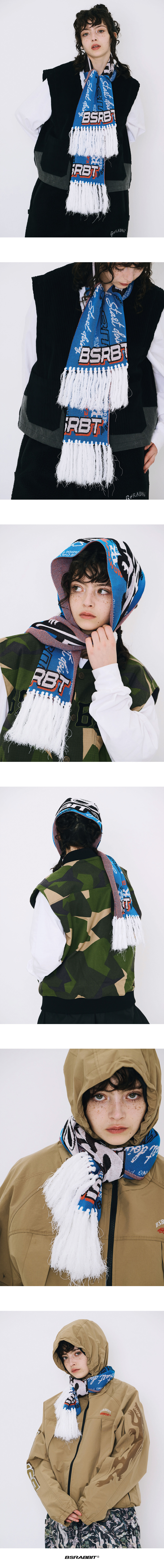 비에스래빗 브라이터 데이지 자가드 머플러 블루