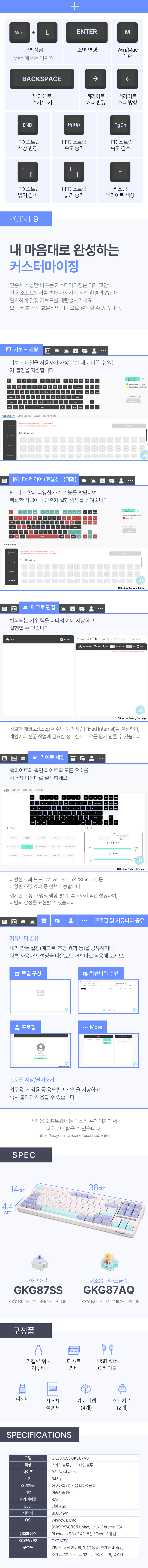긱스타 GKG87SS 유무선 기계식 키보드 텐키리스 가스켓 리니어 게이밍 사무용 저소음 바다소금축