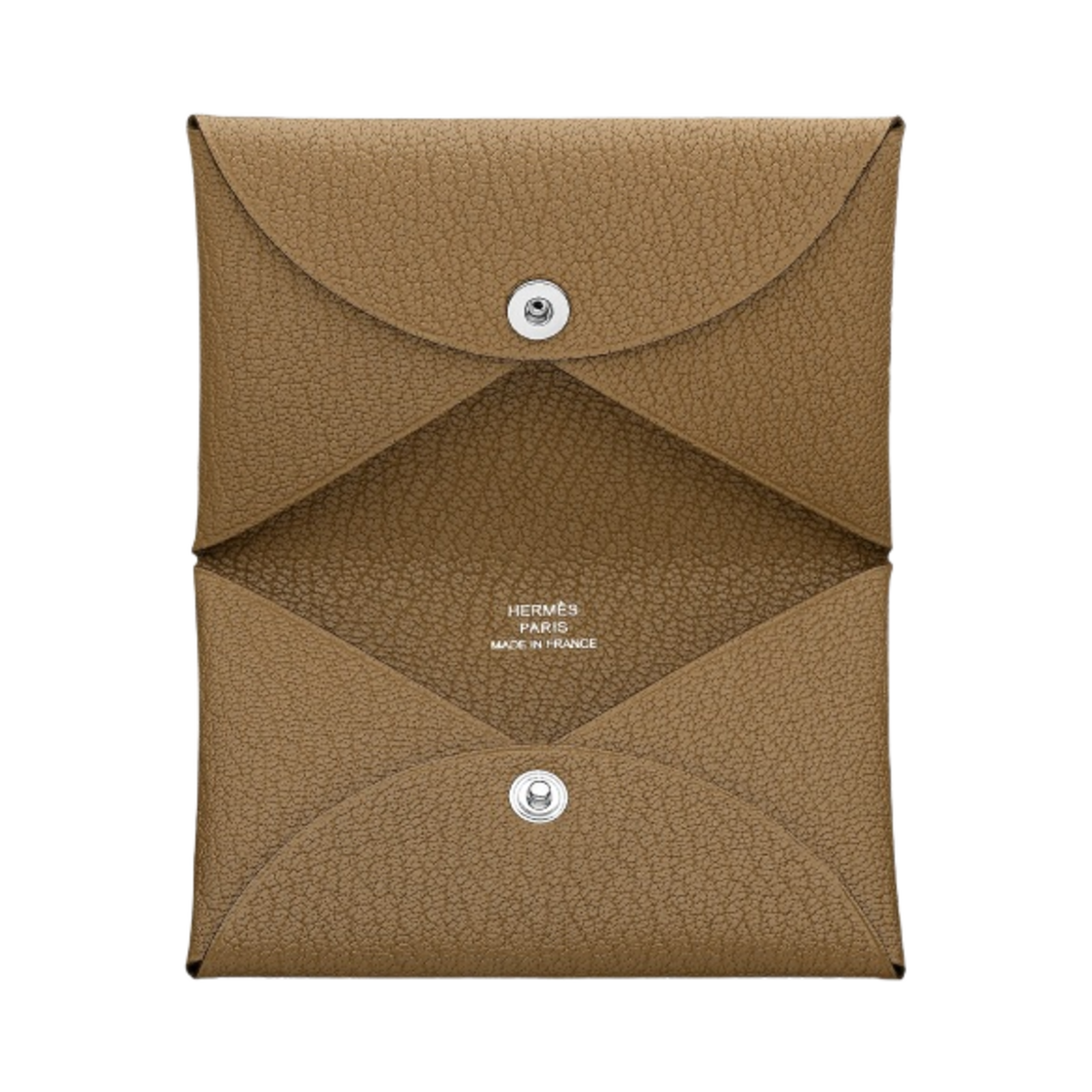 Hermes Calvi Card Holder Mysore Goatskin & Palladium Etoupe