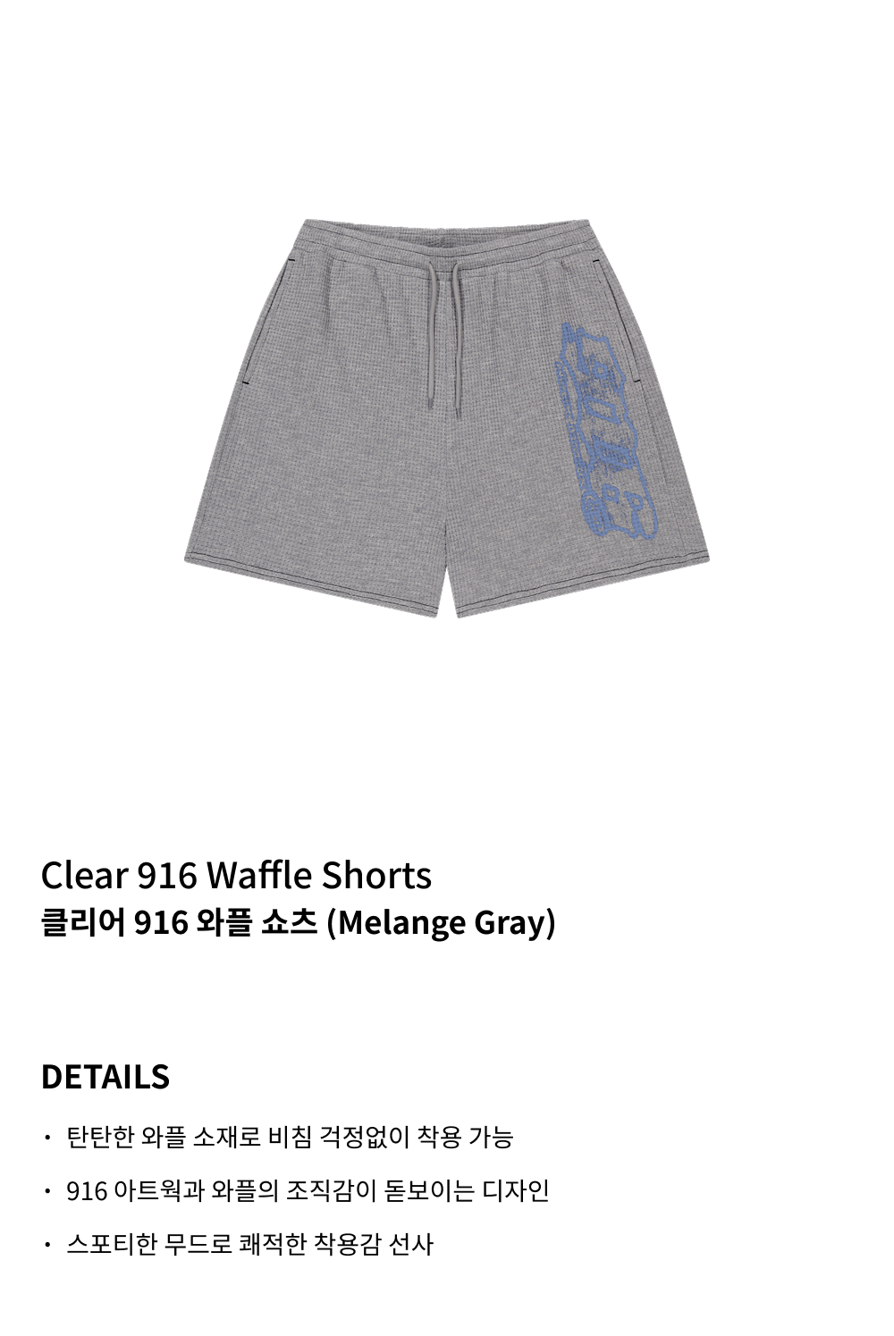 에이치덱스 클리어 916 와플 쇼츠 멜란지 그레이