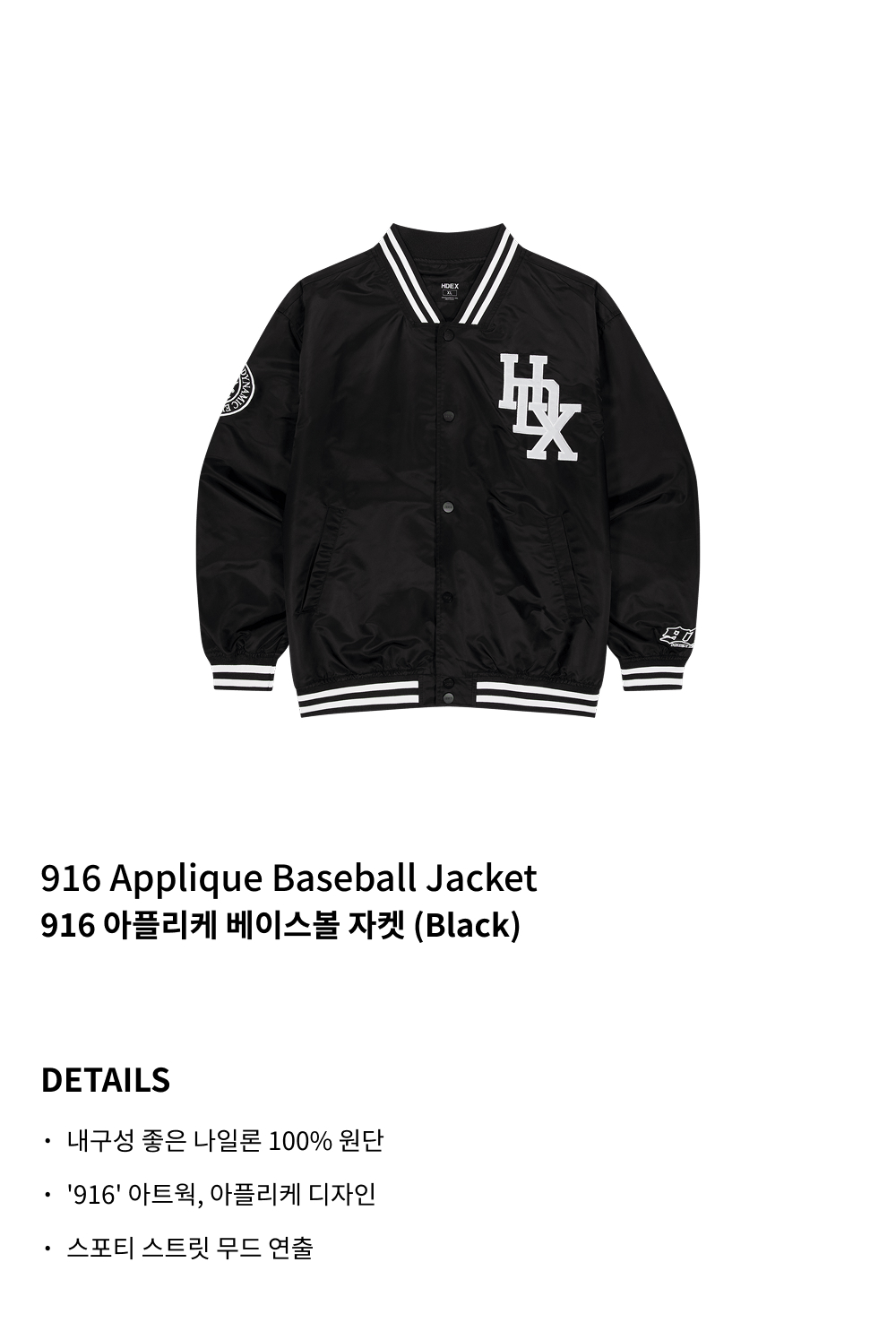 에이치덱스 916 아플리케 베이스볼 자켓 블랙