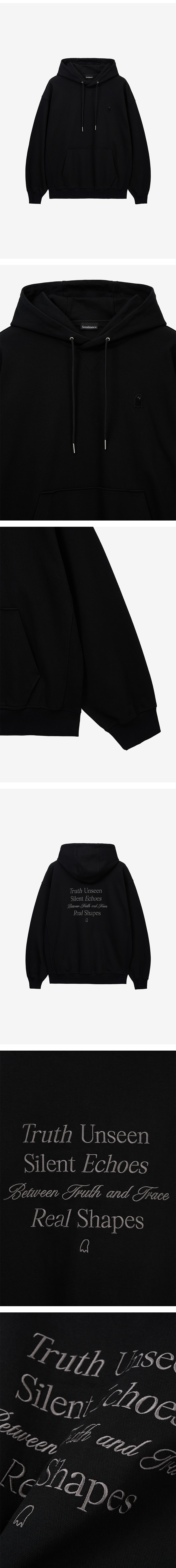 - 셈블런스 슬로건 후드 - 고시감 있는 텍스쳐 원단 사용 - 가슴 고스트 와펜 장식과 옆면 RIB 배색 디테일 - 오버핏 실루엣으로 편안하게 착용 가능 - 등판 셈블런스 슬로건 자수 - 등판 금속 장식 부착