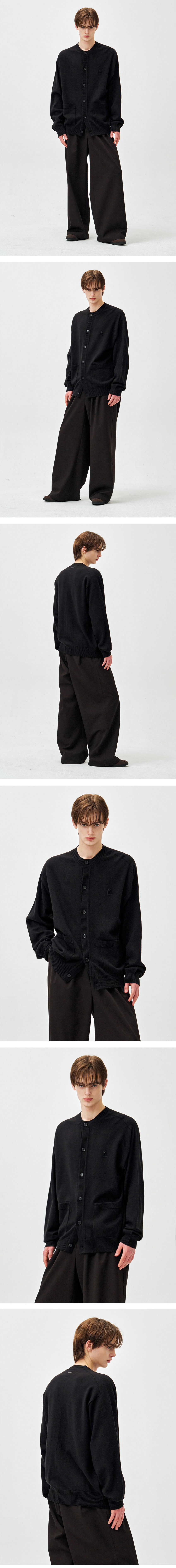 ZIOSONGZIO SEMBLANCE Wholegarment Collarless Cardigan Black