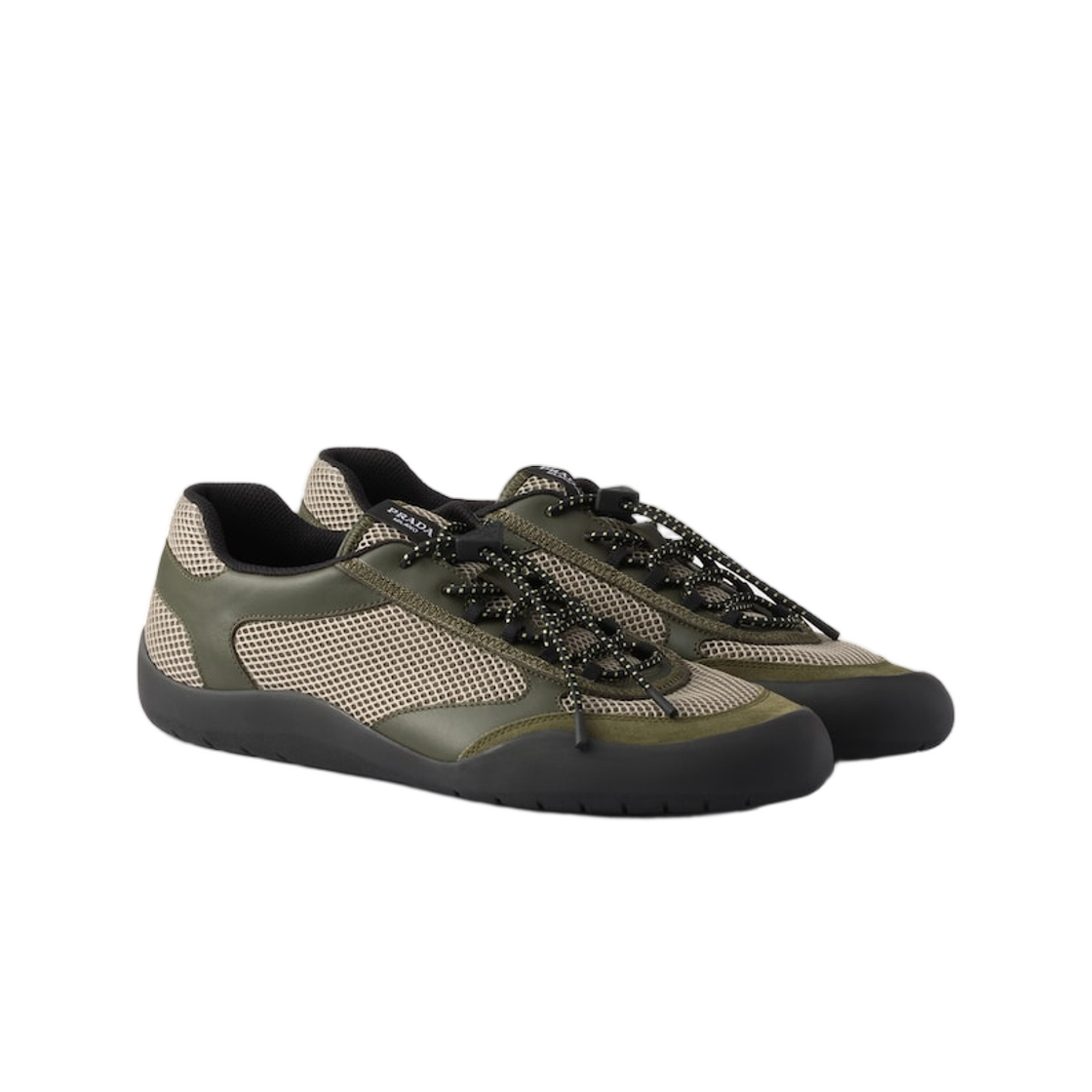 프라다 스피드락 레더 앤 메쉬 패브릭 스니커즈 밀리터리 그린