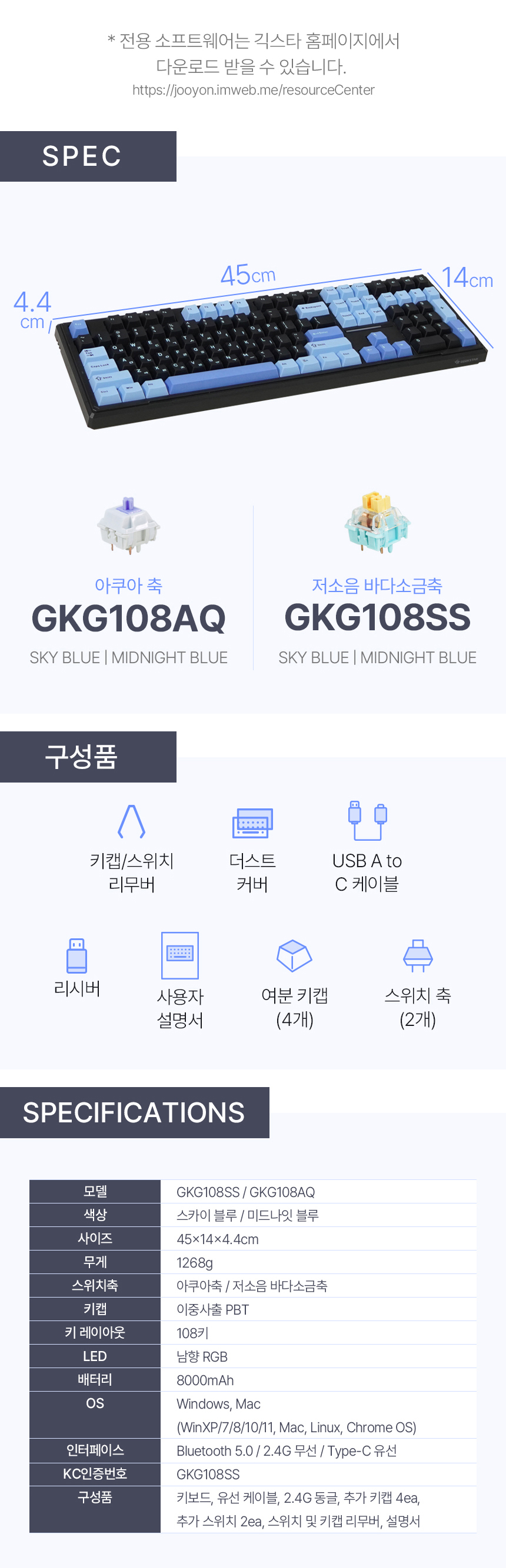 긱스타 GKG108SS 유무선 기계식 키보드 풀배열 리니어 게이밍 사무용 저소음 바다소금축