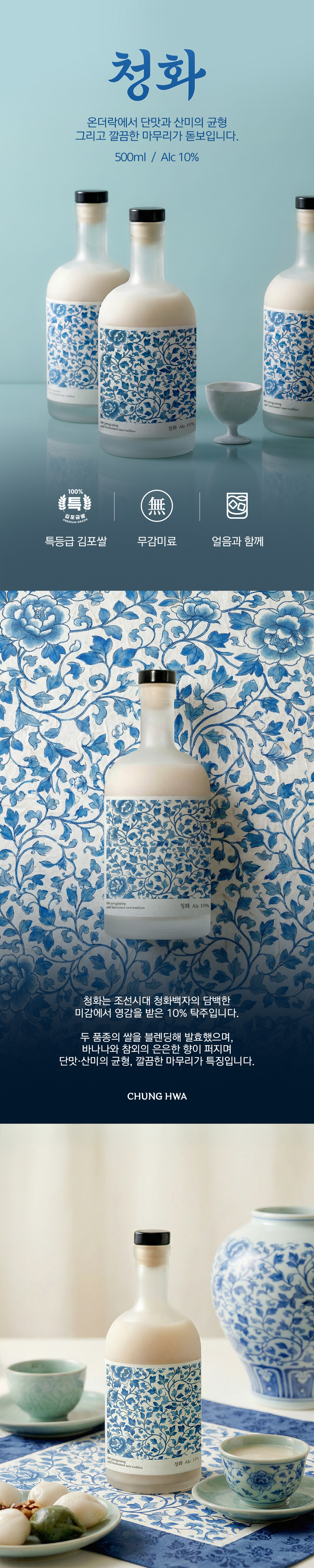 *12:00pm 이전 주문 시 당일출고 다음날 도착* 청화는 조선시대 청화백자의 담백한 미감에서 영감을 받은 탁주입니다. 은은한 바나나 참외향과 함께 온더락에서 단정한 균형이 드러납니다. ✧ AI로 제작된 콘텐츠가 포함되었습니다.
