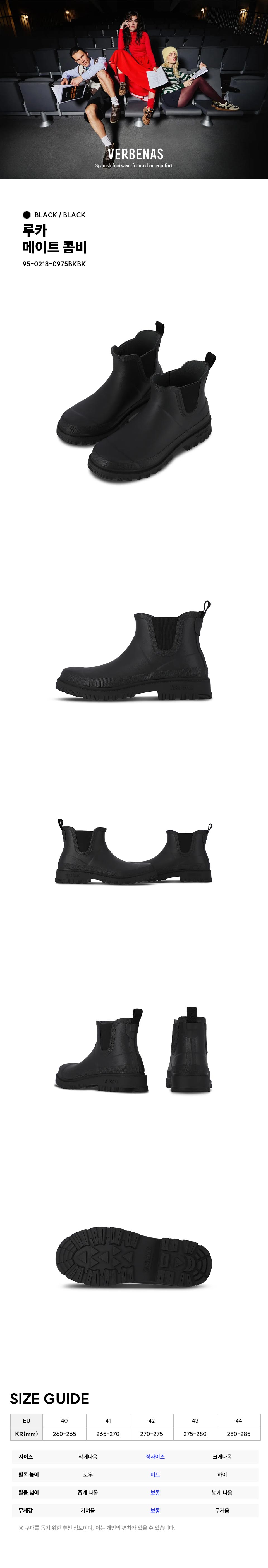 버바나스 맨 루카 메이트 콤비 클래식 레인부츠 블랙 블랙