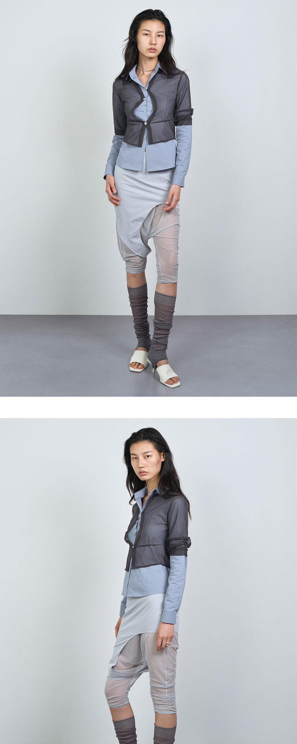 나체 우먼 아웃 인 레이어드 셔츠 라이트 블루 - 26SS