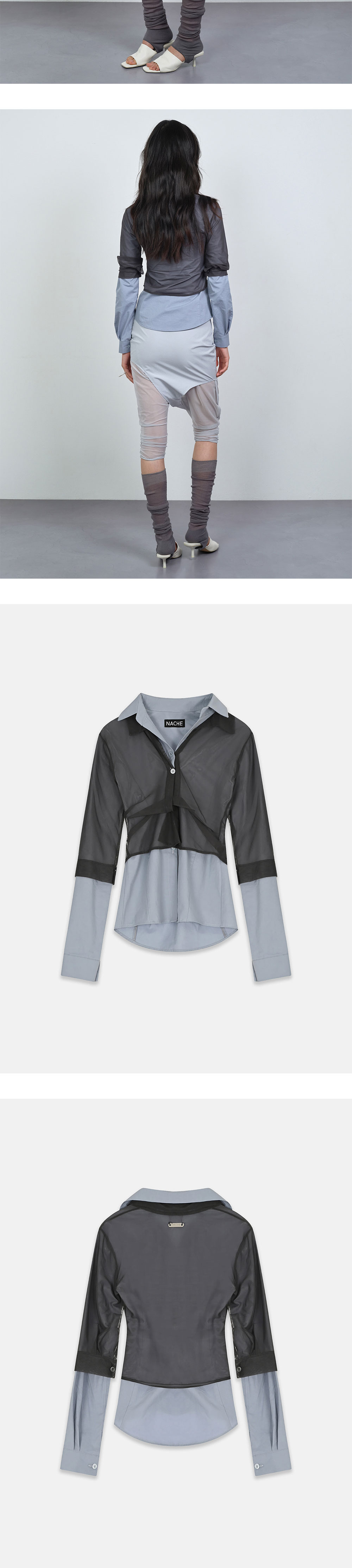 나체 우먼 아웃 인 레이어드 셔츠 라이트 블루입니다. - 세미 슬림 핏 레이어드 셔츠 - 언발란스 단추 여밈 디테일 - 다양한 연출이 가능한 멀티웨이 디자인 - 스판 시스루 패브릭과 탄탄한 코튼 패브릭 믹스매치 - 뒷목 시그니처 니켈 택 디테일 *모델 스펙: 177cm S Size 착용