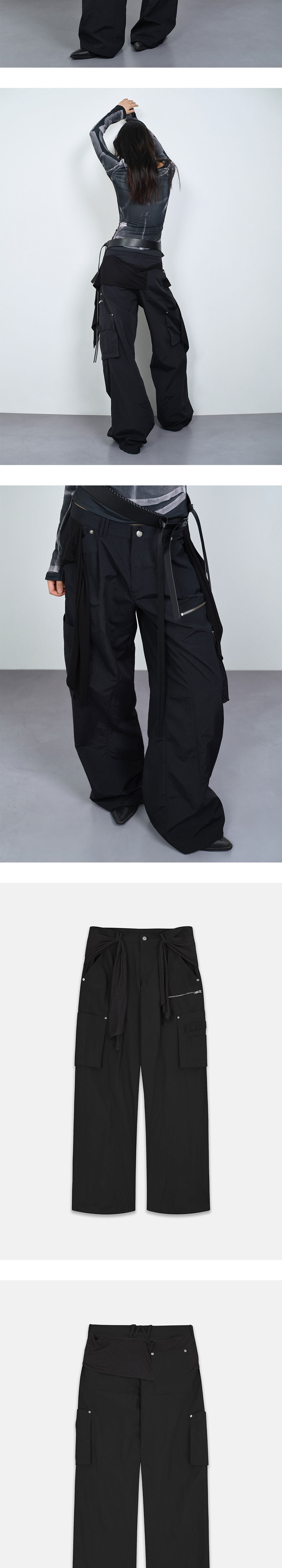 나체 믹스드 레이어드 타이 조거 팬츠 유니섹스 블랙 - 26SS