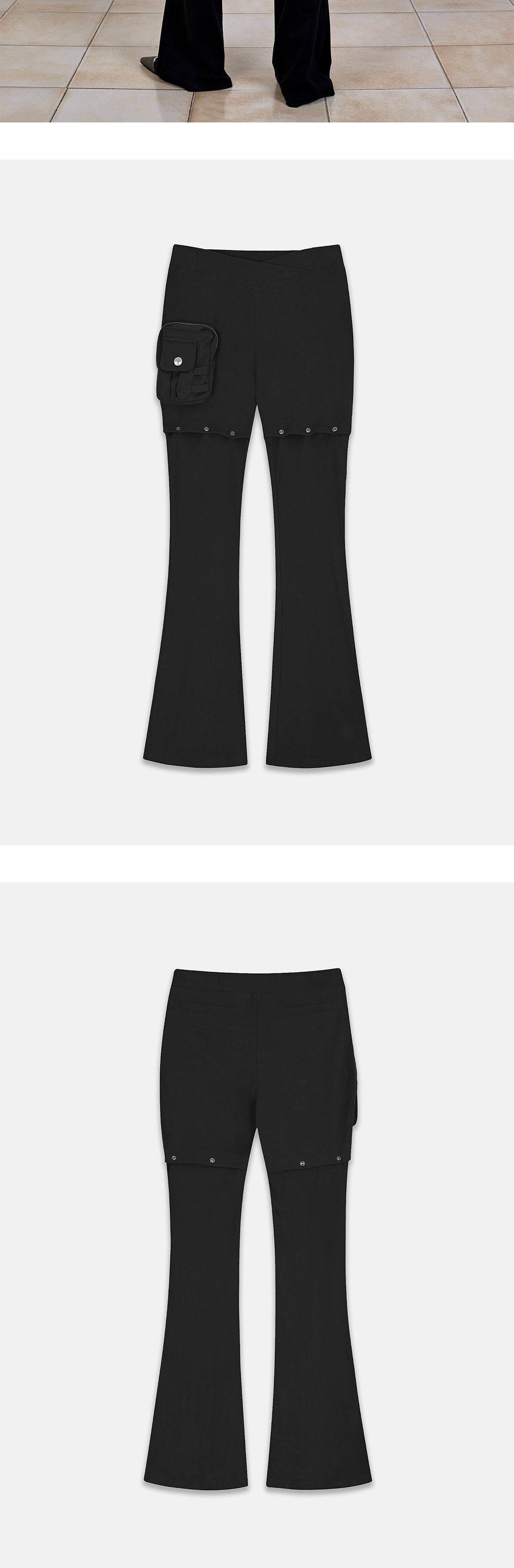 나체 우먼 디테처블 슬림 핏 팬츠 블랙 입니다. - 멀티웨이 부츠컷 팬츠 - 탄탄한 코튼 혼방 패브릭 - 탈부착 가능한 스냅 디테일 - 입체 포켓 디테일 *모델 스펙: 172cm M Size 착용