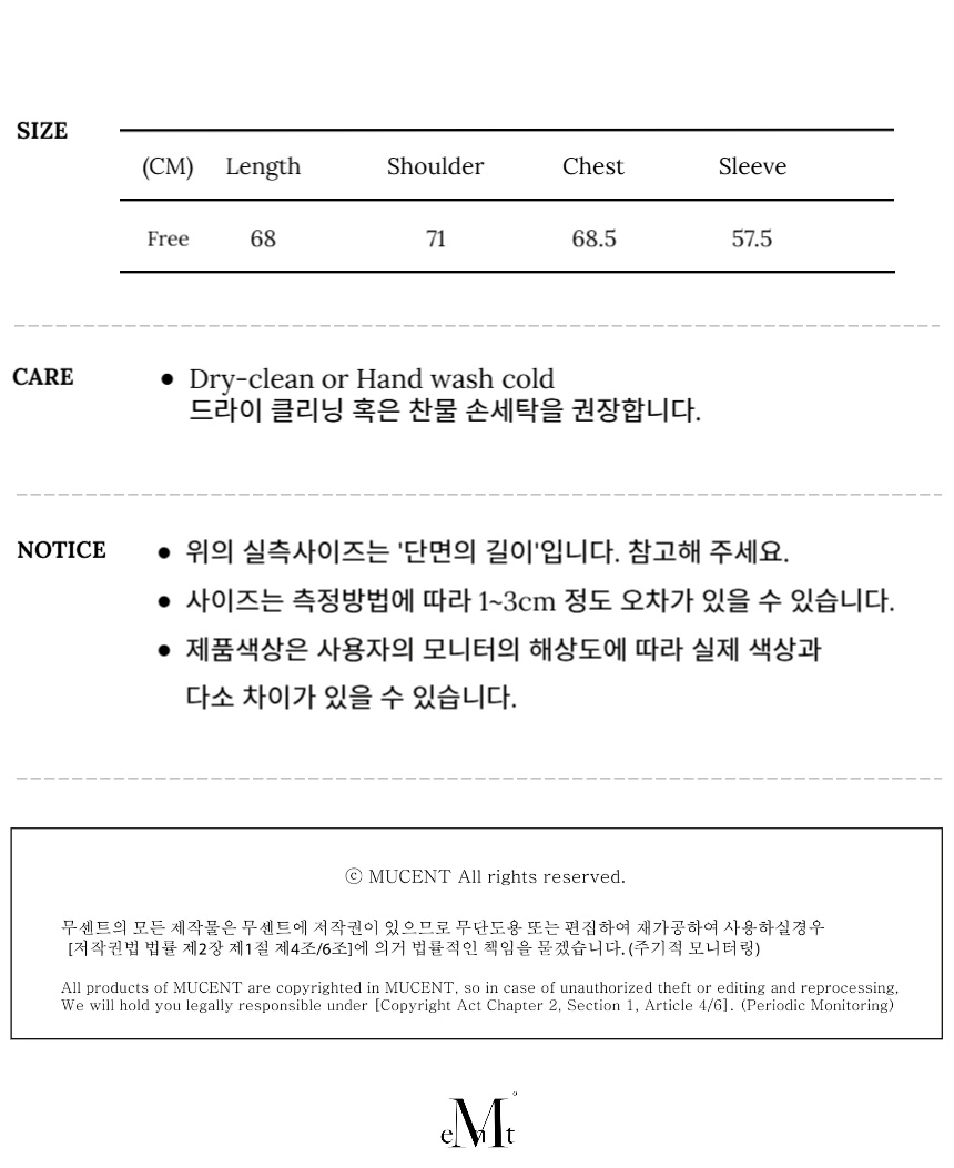 측정 방법에 따라 사이즈에 일부 오차가 있을 수 있습니다.