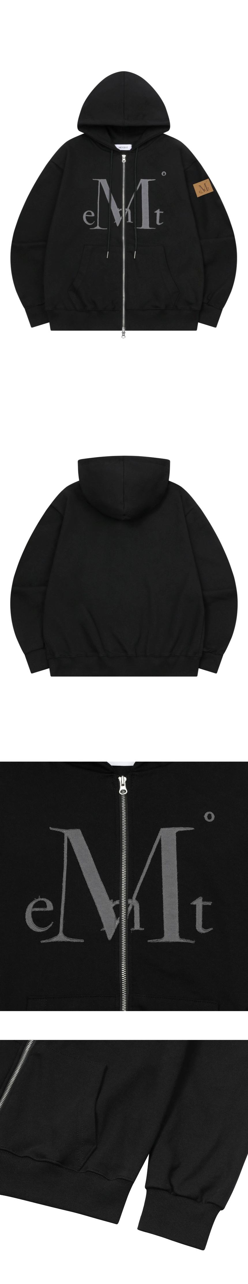 무센트 와디 아플리케 로고 후드 집업 남녀공용 (3컬러) 블랙