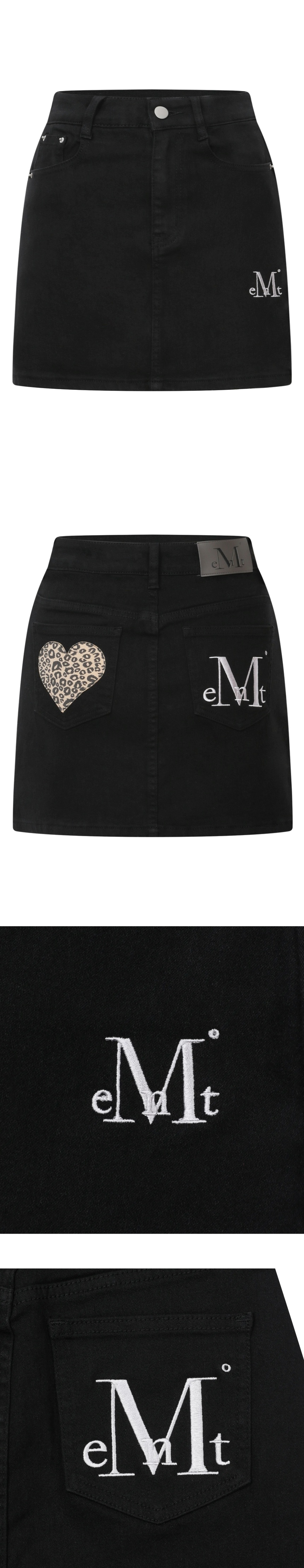 무센트 코론 백 레더 호피 하트 패치 스커트 블랙