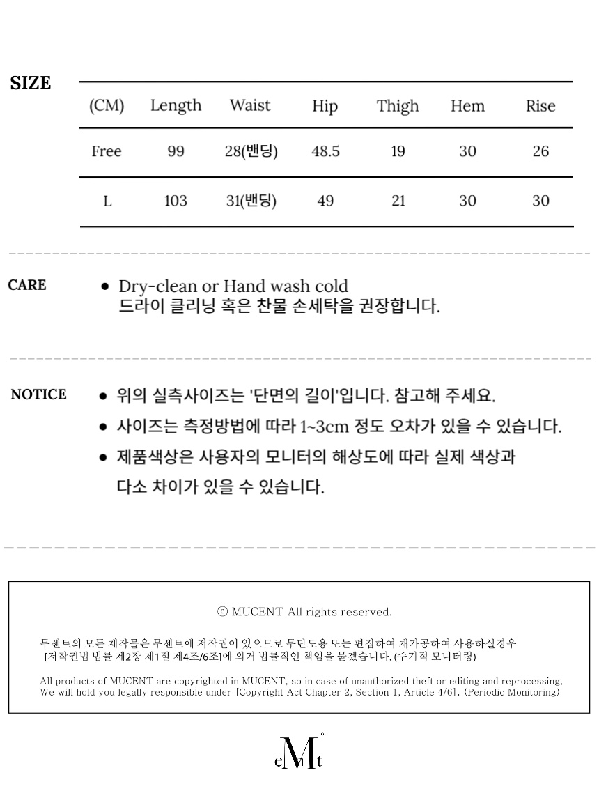 ┃Detail • 전면부 무센트 시그니처 자수 • 일체형 치마 레깅스 • 다리가 길어보이는 부츠컷 실루엣 • 허리 밴딩으로 편안한 착용감 • 착용 시 피부에 부드럽게 밀착되는 터치감 • 스타일에 구애받지 않는 데일리한 아이템 ┃Material : Polyester 100% ┃Care : Dry cleaning - 무센트는 말기의 행성인 이 지구에서 지속 가능한 옷들을 고민합니다. 우리는 신념을 소비하는 미닝아웃을 지지합니다.