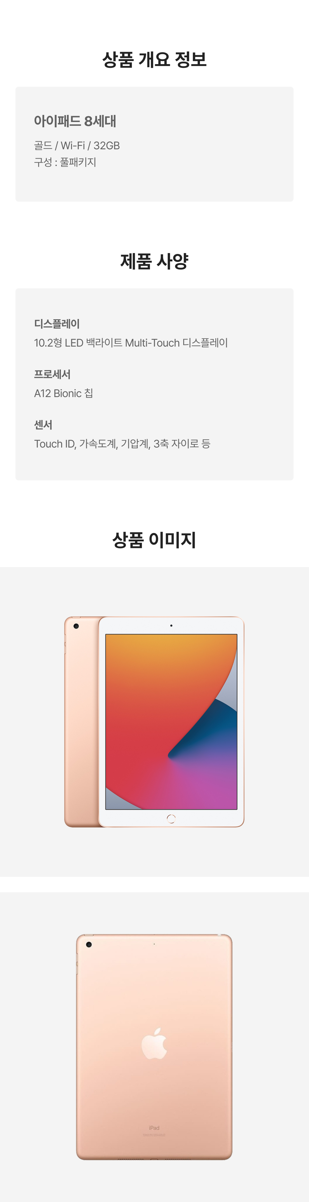 [A등급] 리퍼비시 아이패드 8세대 wifi A12 Bionic 32기가 골드