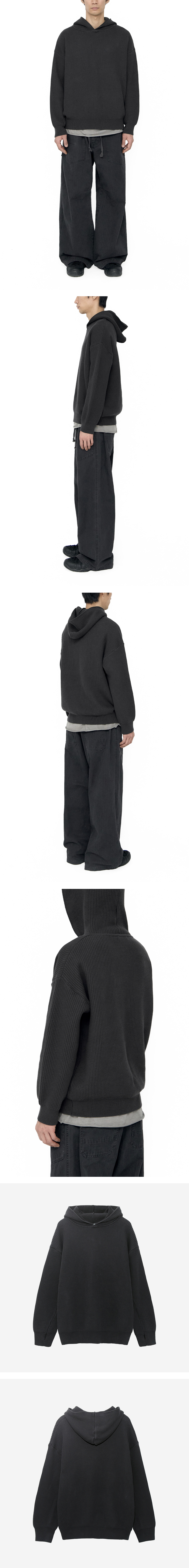 human knit hoodie - 벌키한 실루엣 - 루즈하게 떨어지는 핏감 - 크롭한 밸런스 - 소매 핑거홀 - 밑단 & 소매 립 *모델: 170 중반 / 마른 체형, 3사이즈 착용