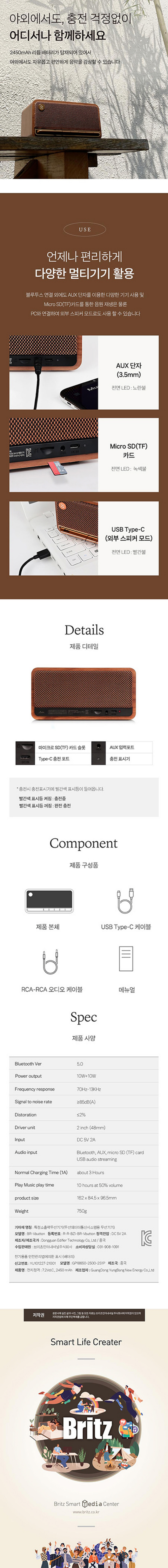 브리츠 BR-Vbutton 엔틱 인테리어 피아노스타일 블루투스 스피커 화이트