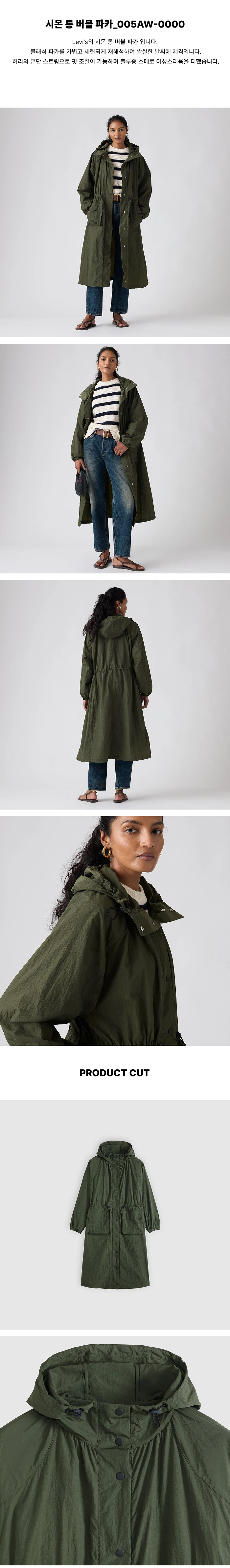 리바이스 시몬 롱 버블 파카 카키