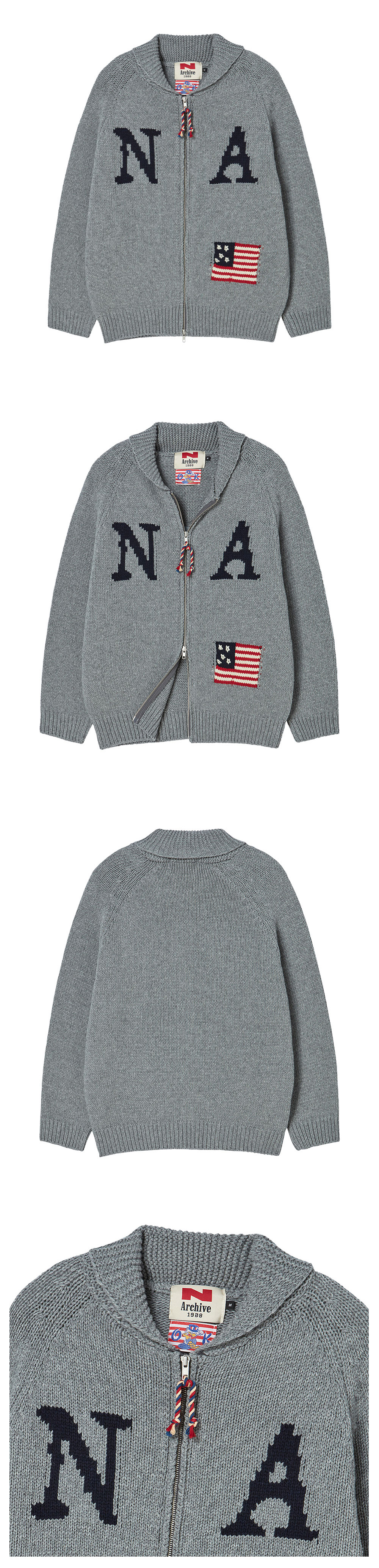 엔 아카이브 핸드 메이드 디테일 빈티지 리그 니트 점퍼 그레이