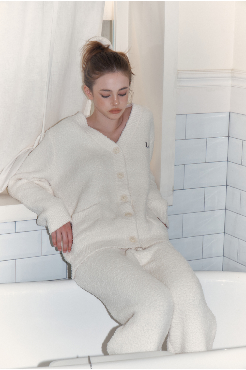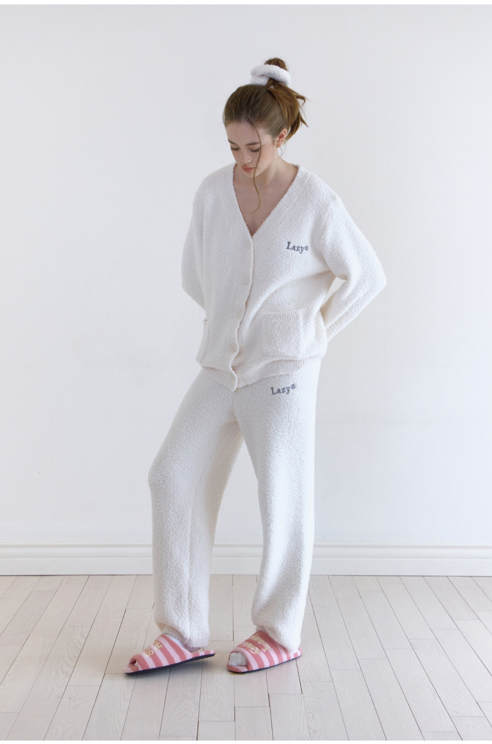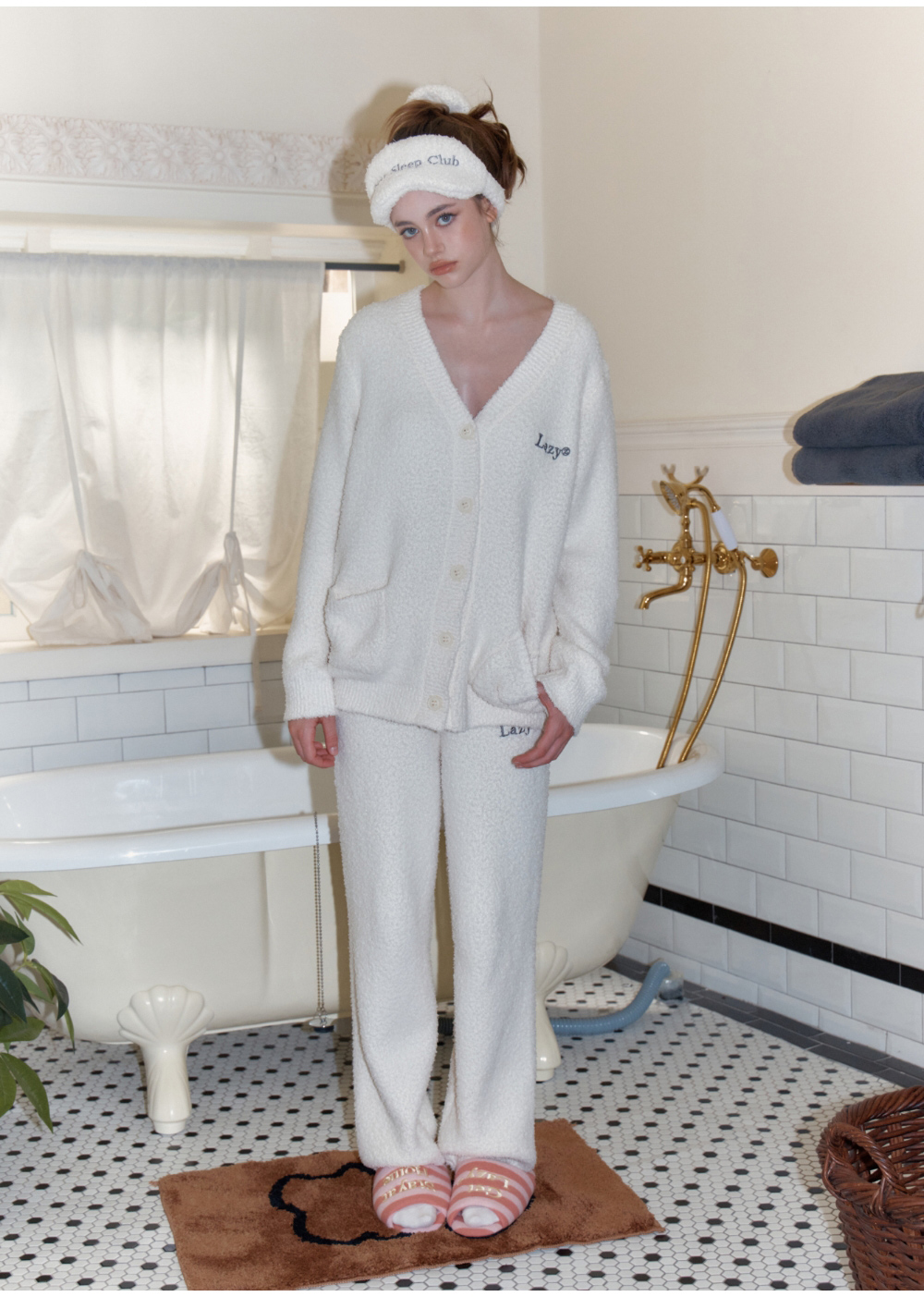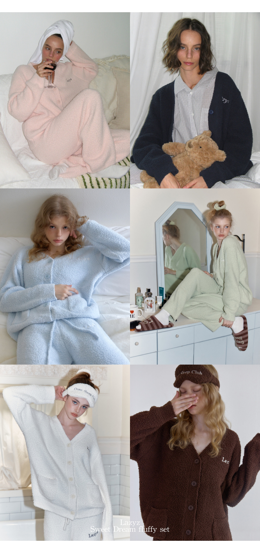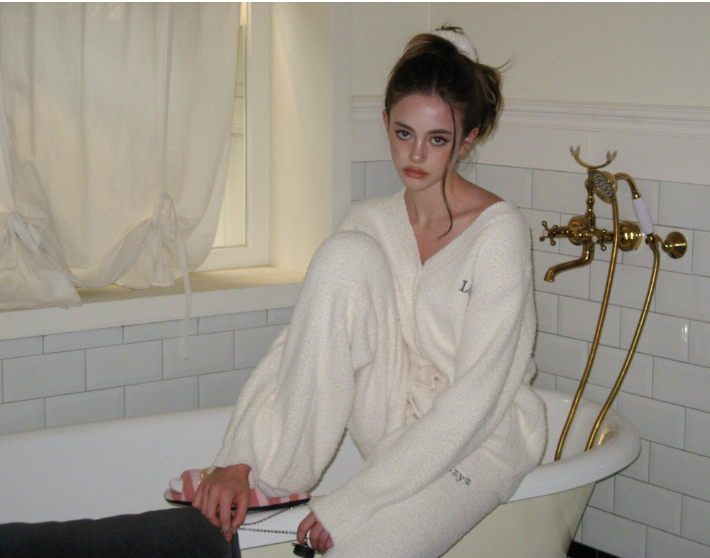 레이지지 스윗 드림 플러피 가디건 팬츠 세트 - 크림