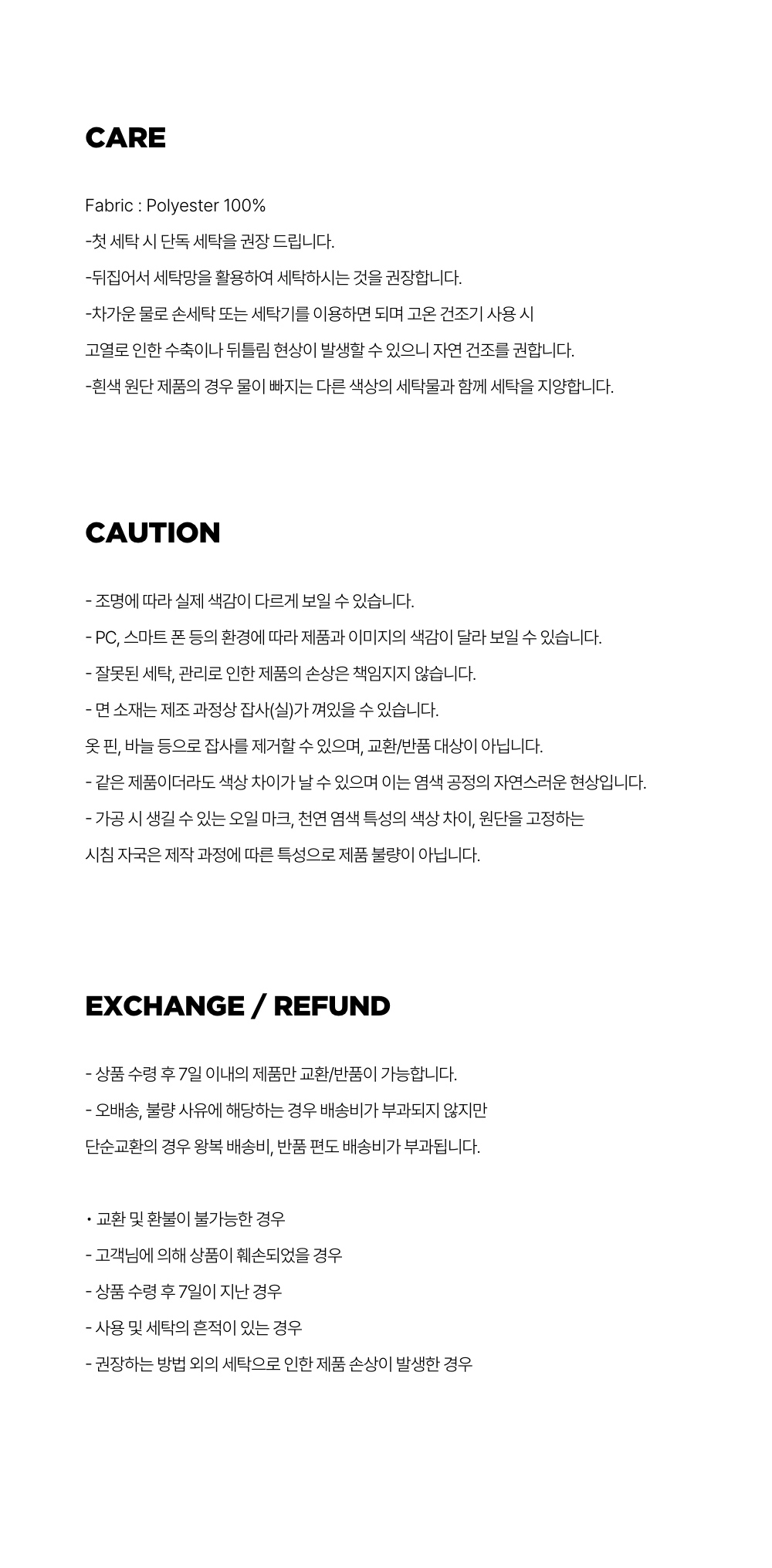 교환 및 반품 안내