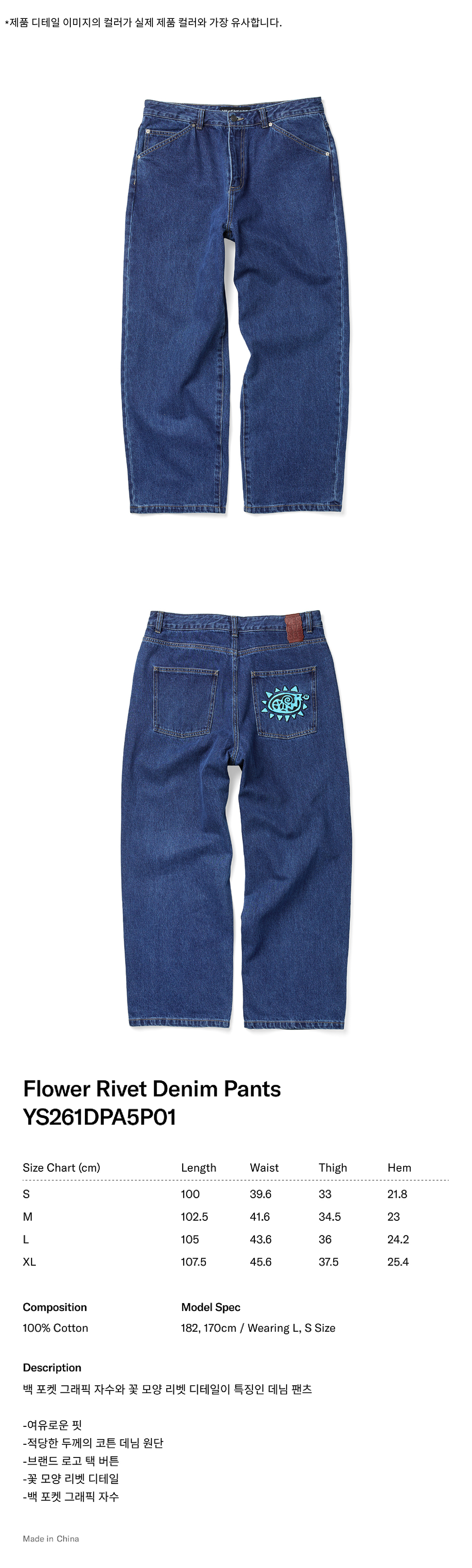 [더블적립] 예스아이씨 플라워 리벳 데님 팬츠 인디고