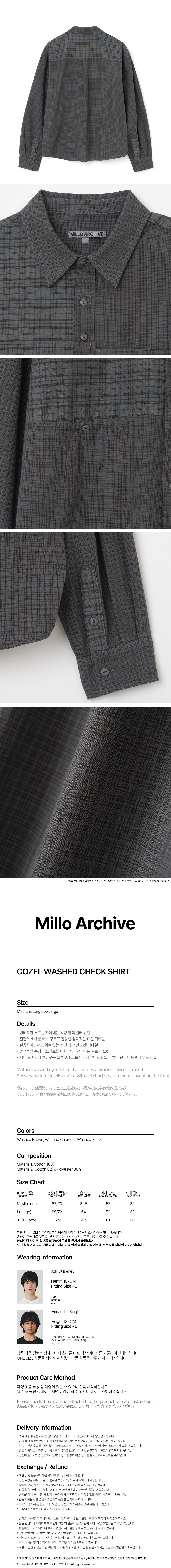 밀로 아카이브 코젤 워시드 체크 셔츠 워시드 차콜