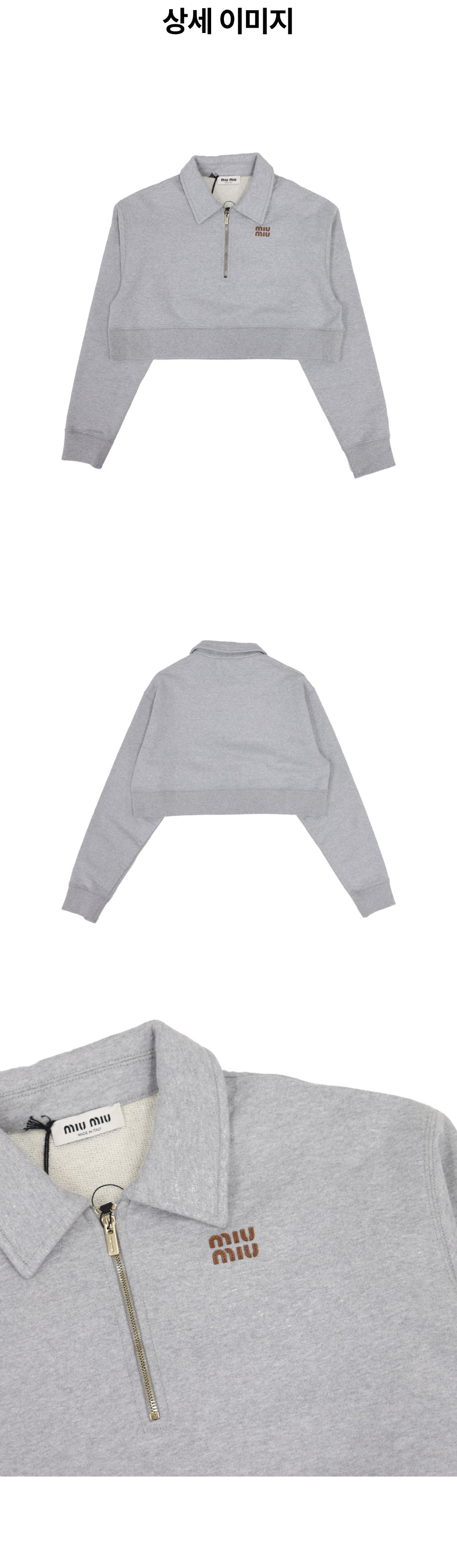 미우미우 MJL070 하프 지퍼 오버핏 카라 스웨트 셔츠 코튼 그레이