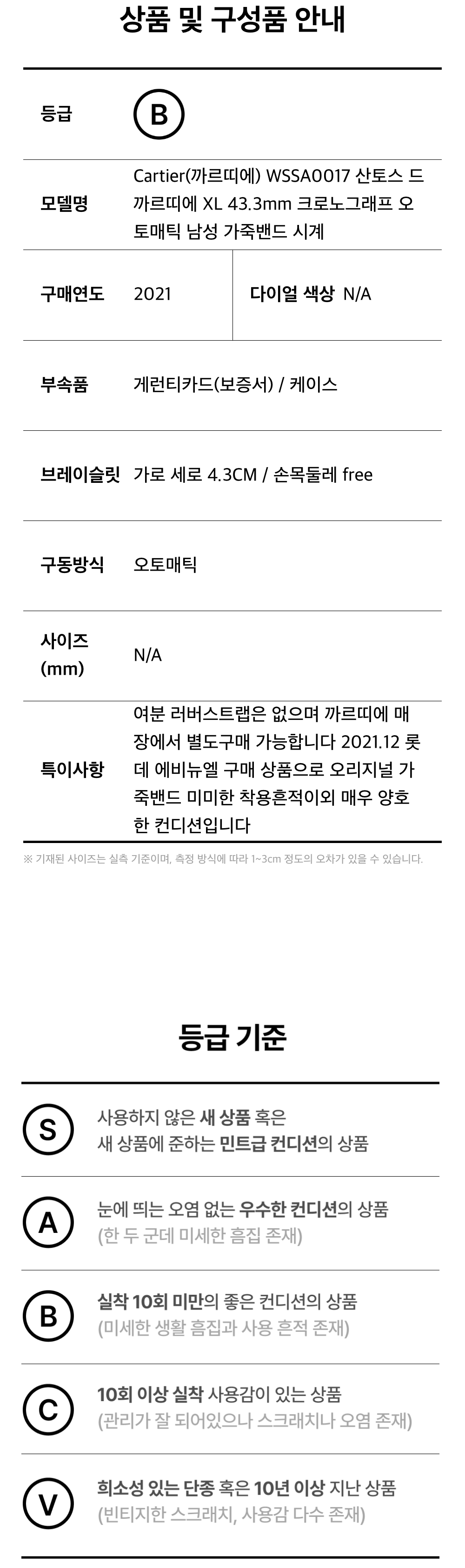 까르띠에 WSSA0017 산토스 드 까르띠에 XL 43.3mm 크로노그래프 오토매틱 남성 가죽밴드 시계aa59709