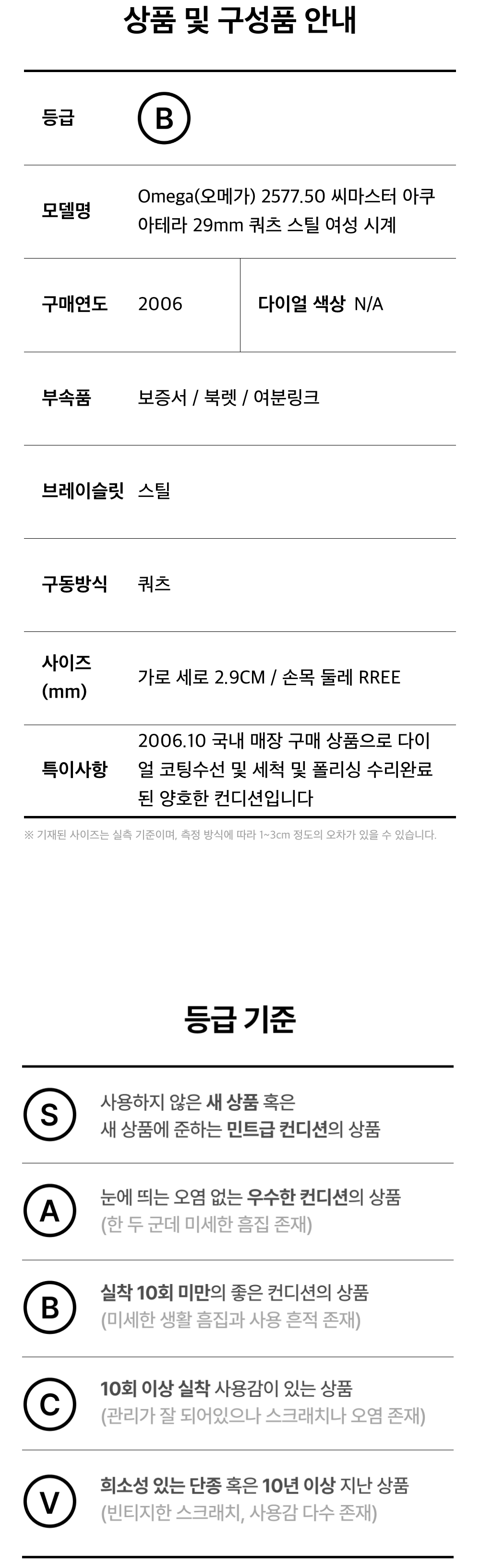 오메가 2577.50 씨마스터 아쿠아테라 29mm 쿼츠 스틸 여성 시계aa59378