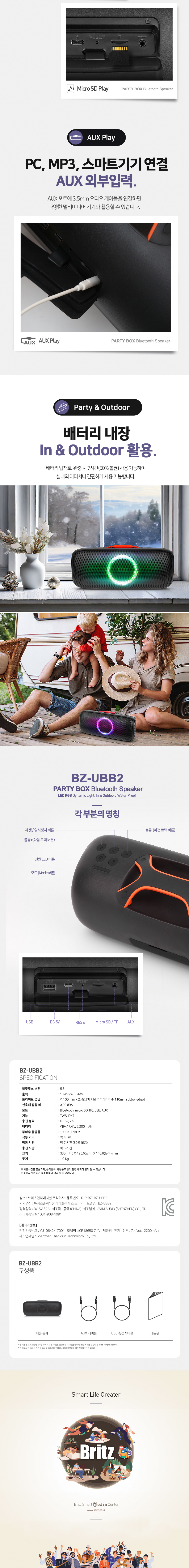 브리츠 BZ-UBB2 LED RGB 인&아웃도어 블루투스 스피커
