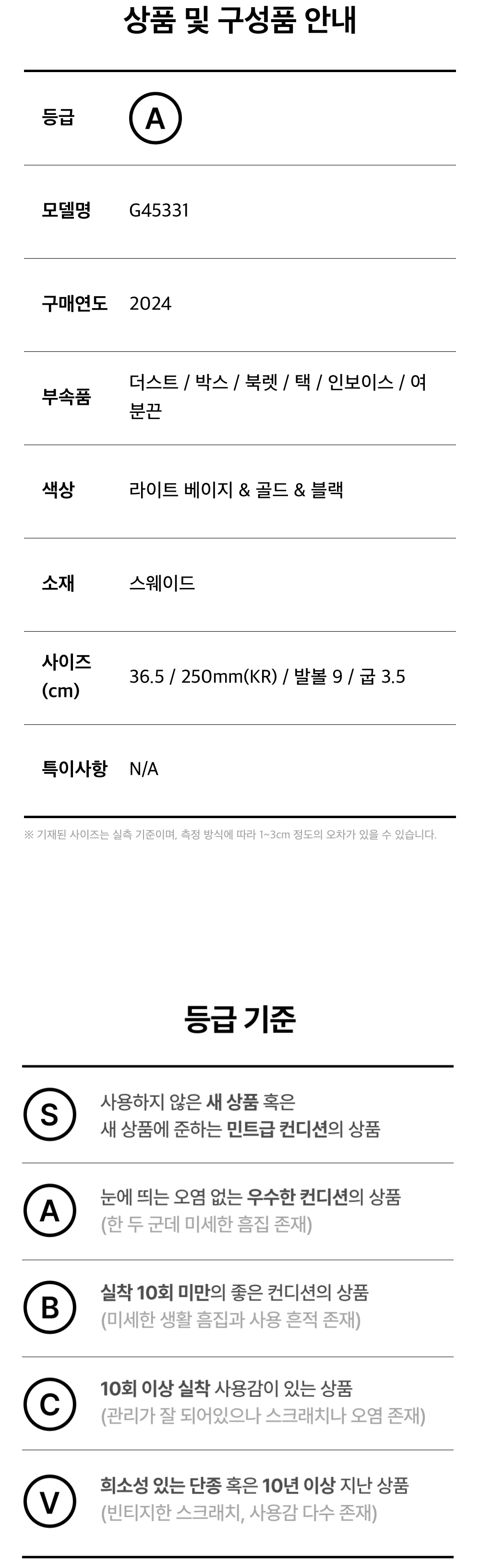 샤넬 G45331 믹스드 파이버 스니커즈 스웨이드 라이트 베이지 블랙 골드 36.5