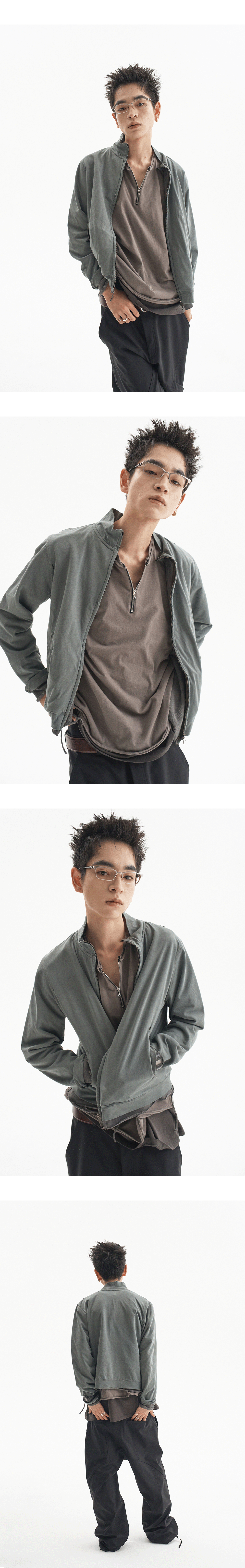 - 해당 제품은 [예약배송] 으로, 2월 27일(금) 부터 순차적으로 발송될 예정입니다. (예상 배송 일정보다 조금 더 빠르게 배송 될 수 있습니다.) 안감의 소매가 밖으로 노출되는 형태로 그런지한 느낌을 살린 슬림 집업입니다. MODEL : 180CM / 61KG WEARING SIZE : 1