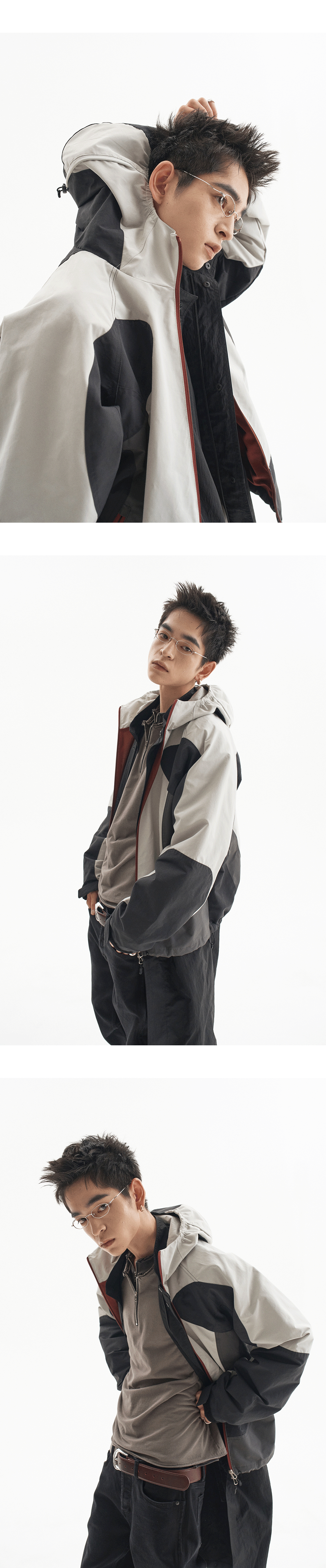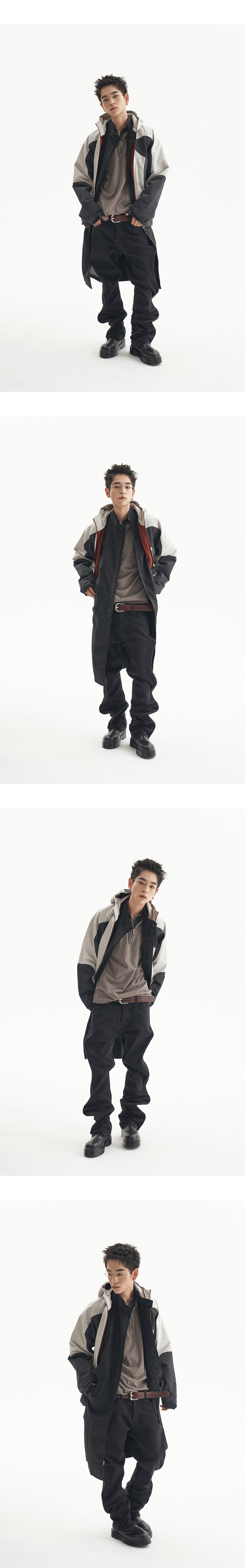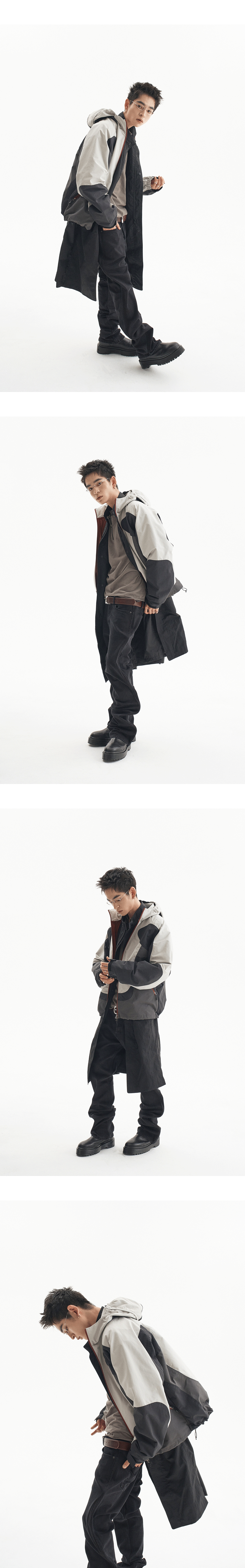 레드 포인트를 준 여러 패널로 완성된 쉘 파카입니다. MODEL : 180CM / 61KG WEARING SIZE : 1
