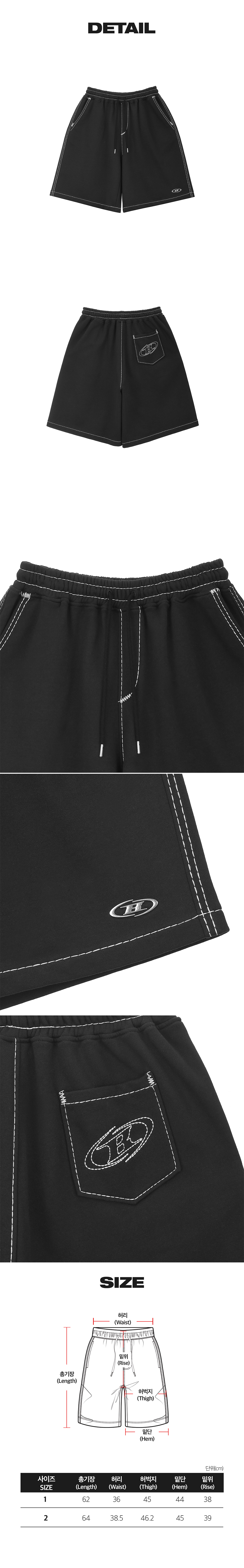 본투윈 볼드 라인 심볼 B 버뮤다 팬츠 워시드 블랙